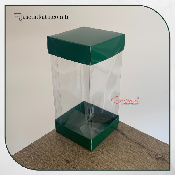 7x7x14 Yeşil Çift Taraflı Karton ve Asetat Kutu