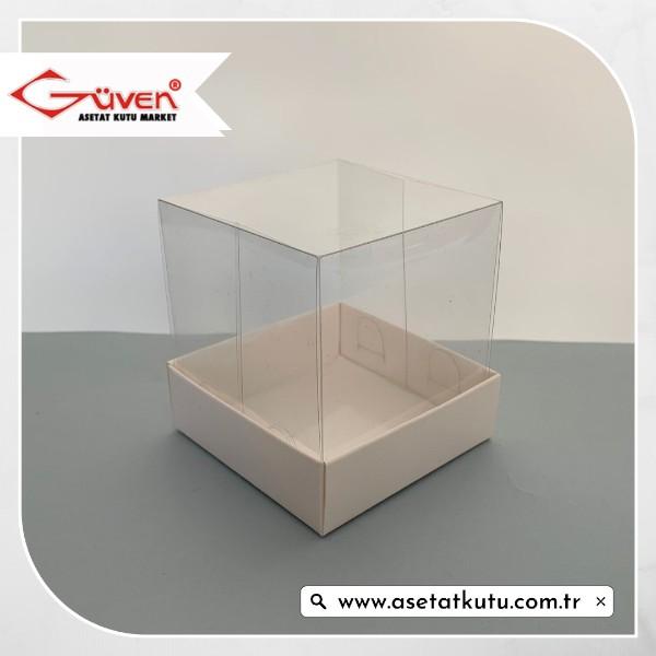 7x7x7 Altı Beyaz Karton Üstü Asetat Kutu