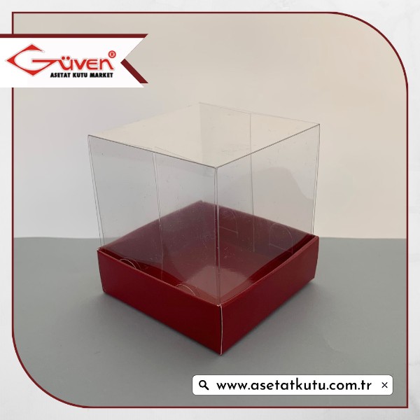 7x7x7 Altı Bordo Karton Üstü Asetat Kutu