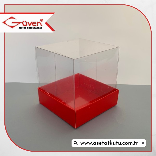 7x7x7 Altı Kırmızı Karton Üstü Asetat Kutu