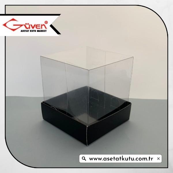 7x7x7 Altı Siyah Karton Üstü Asetat Kutu