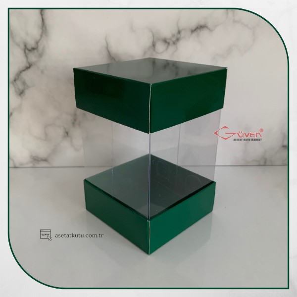 8x8x12 Asetat, Çift Taraflı Yeşil Karton Kutu