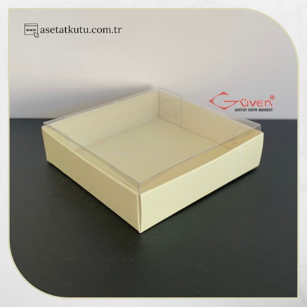 8x8x2 Altı Krem Karton Üstü Asetat Kutu (İçten Kapanan)