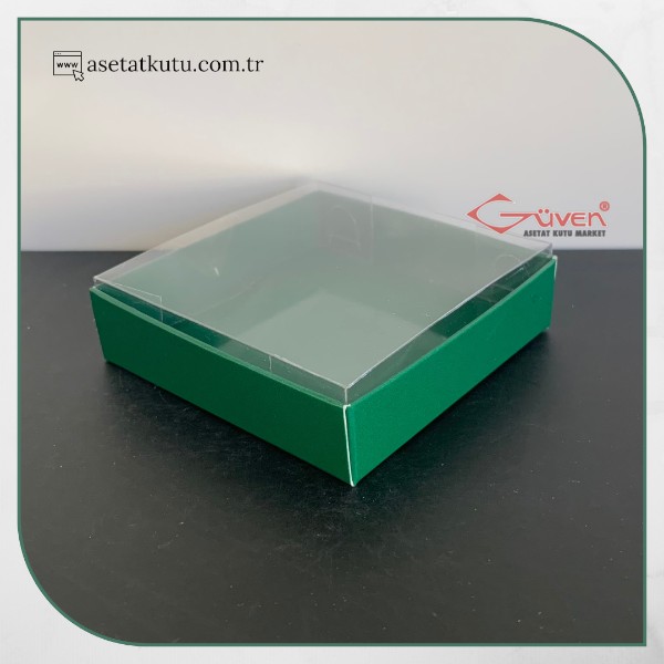 8x8x2 Altı Yeşil Karton Üstü Asetat Kutu (İçten Kapanan)