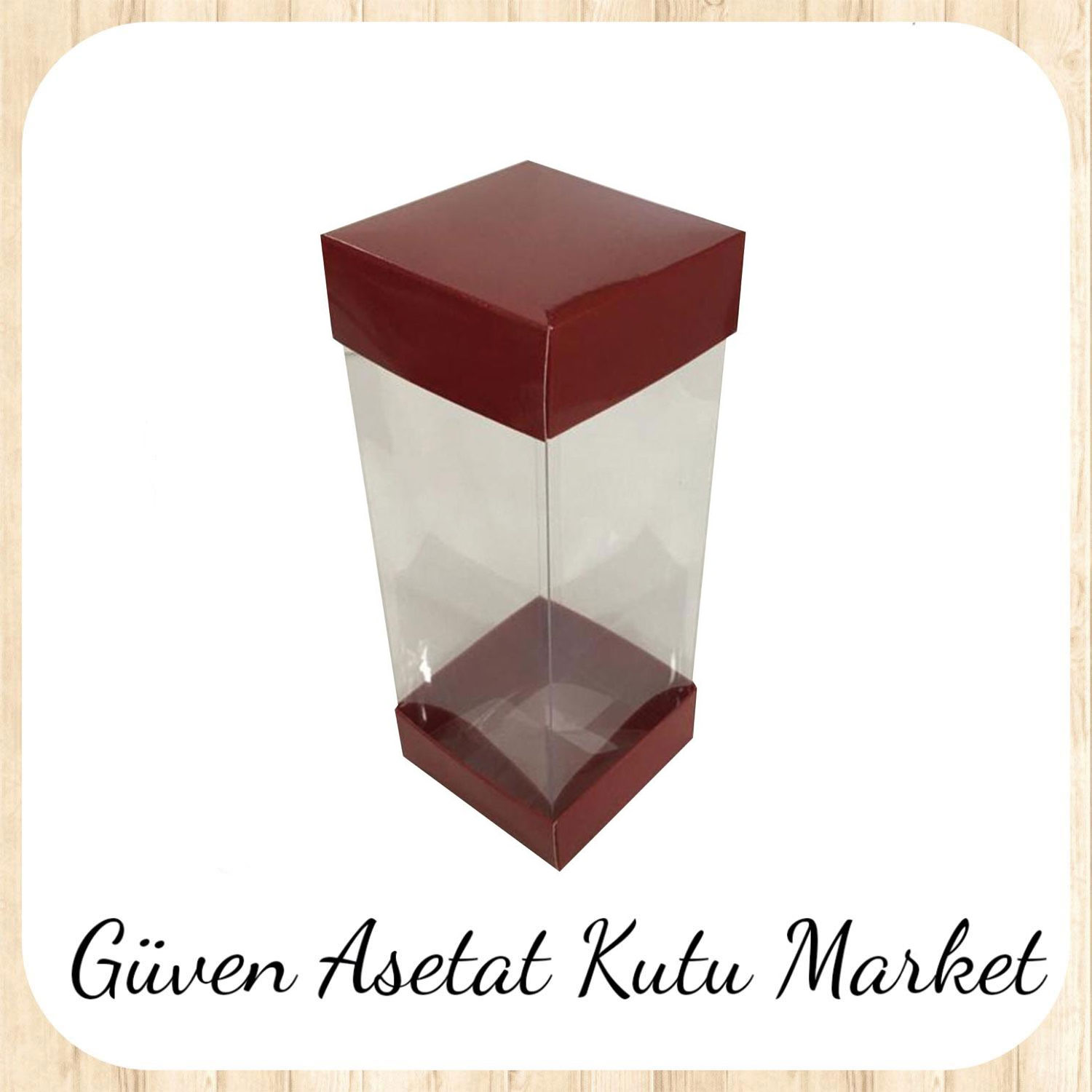 8x8x20 Asetat, Çift Taraflı Bordo Kutu