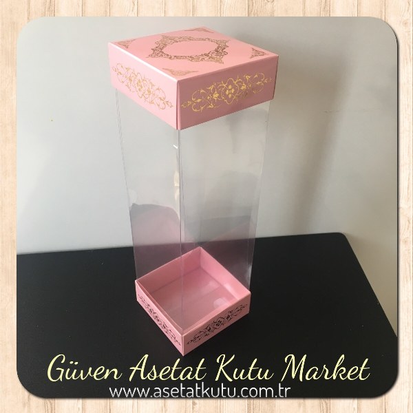 8x8x25 Asetat, Çift Taraflı Pembe Üzerine Gold Saray Desenli Karton Kutu