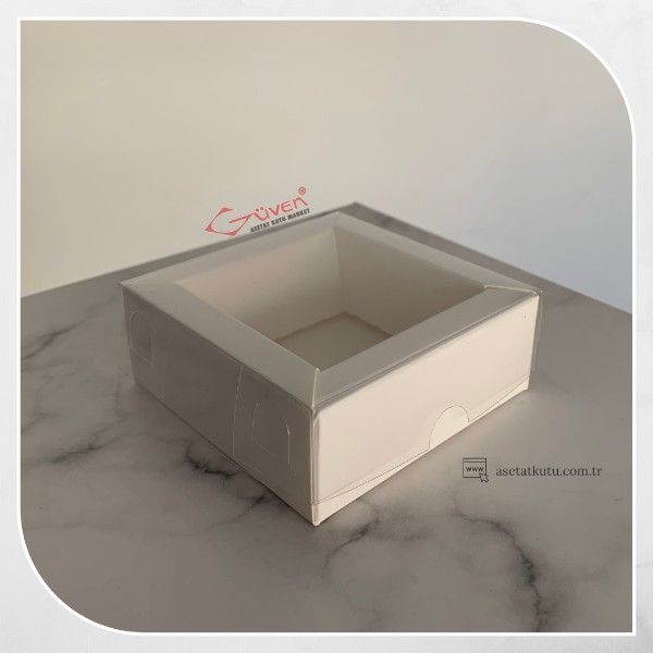 [Duvarlı Kutu] 8x8x3 Altı Beyaz Karton Üstü Asetat Kutu