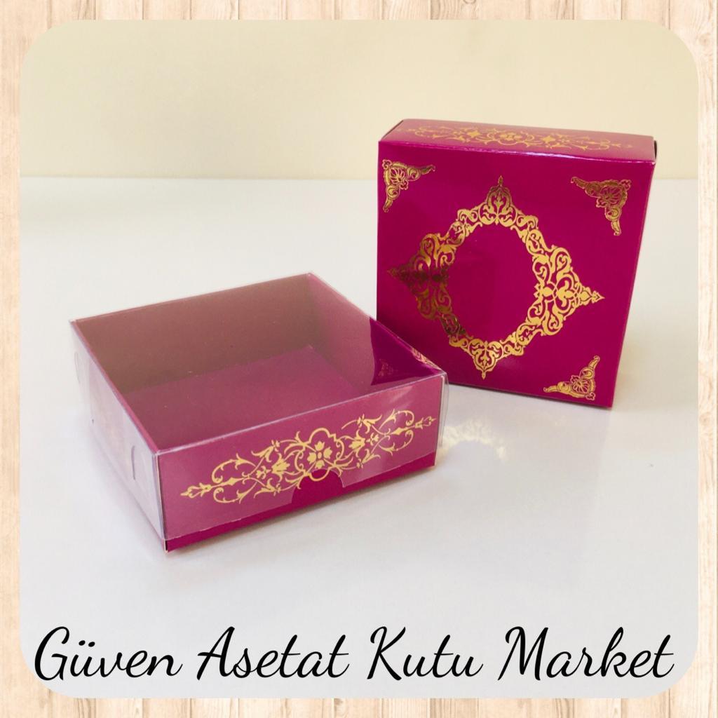 8x8x3 Altı Mor Üzerine Gold Saray Desenli Karton, Üstü Asetat Kutu