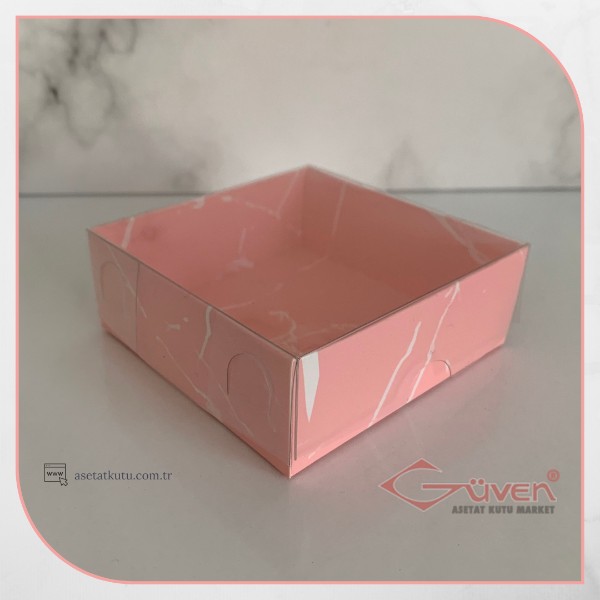 8x8x3 Altı Pembe Mermer Desenli Karton Üstü Asetat Kutu
