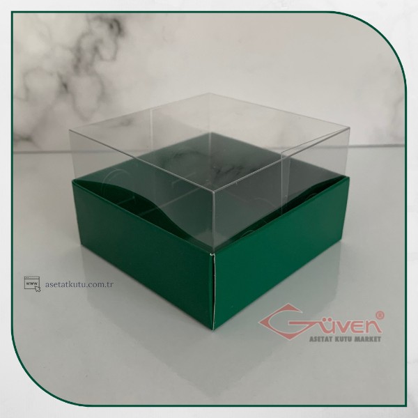 8x8x5 Altı Yeşil Karton Üstü Asetat Kutu