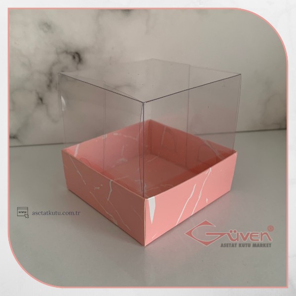 8x8x8 Altı Pembe Mermer Desenli Karton Üstü Asetat Kutu