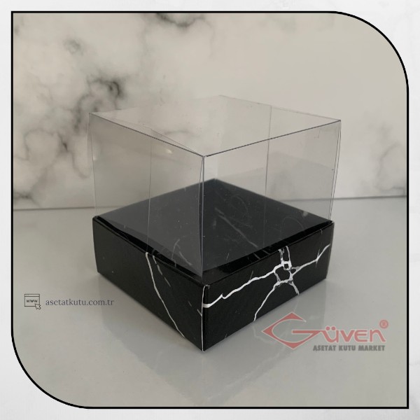8x8x8 Altı Siyah Mermer Desenli Karton Üstü Asetat Kutu