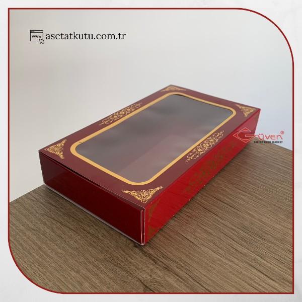 9x16x3 Bordo Üzeri Gold Saray Desenli Pencereli Kutu