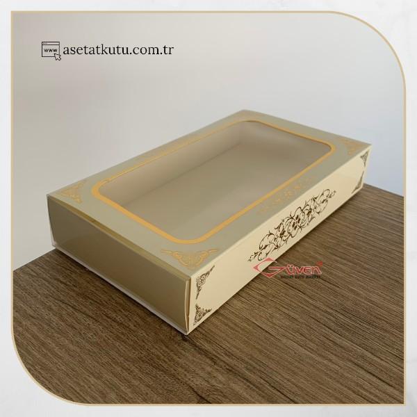 9x16x3 Krem Üzeri Gold Saray Desenli Pencereli Kutu