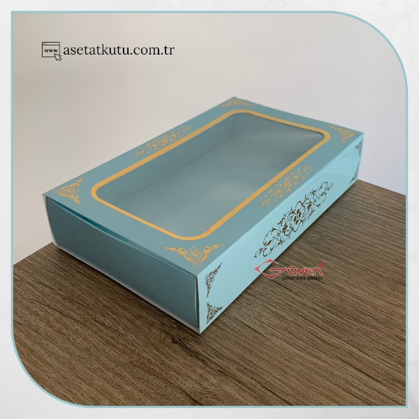 9x16x3 Mavi Üzeri Gold Saray Desenli Pencereli Kutu