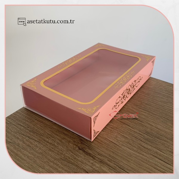 9x16x3 Pembe Üzeri Gold Saray Desenli Pencereli Kutu