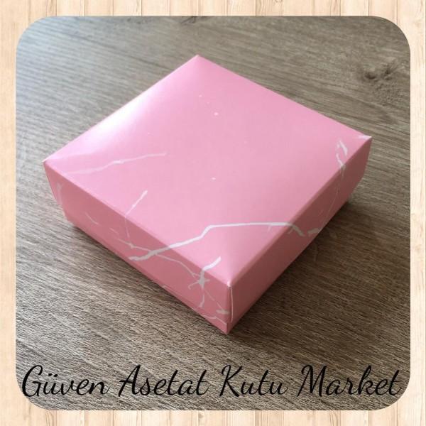 9x9x3 Altı Pembe Mermer Desenli Komple Karton Kutu