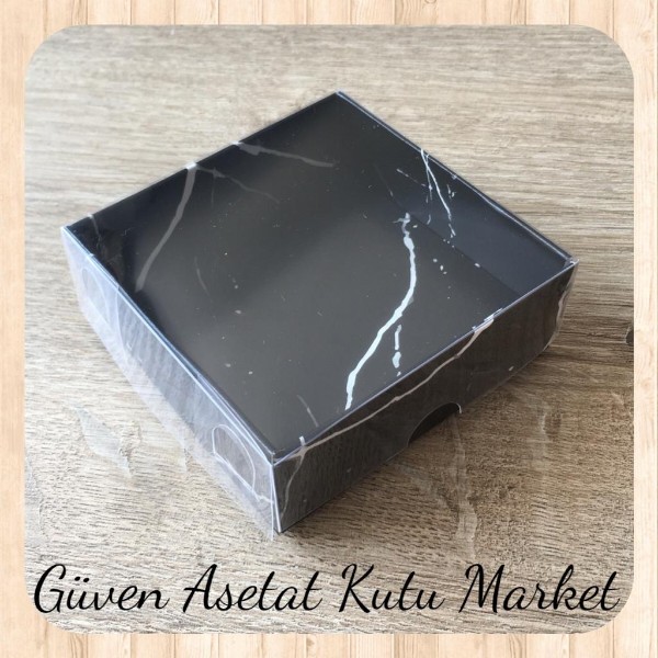 9x9x3 Altı Siyah Mermer Desenli Karton Üstü Asetat Kutu