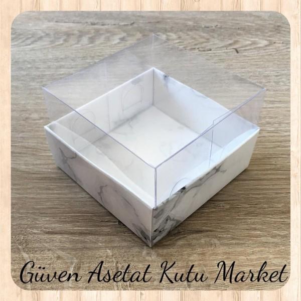 9x9x5 Altı Beyaz Mermer Desenli Karton Üstü Asetat Kutu