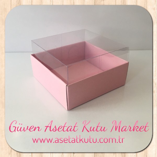 9x9x5 Altı Pembe Karton Üstü Asetat Kutu