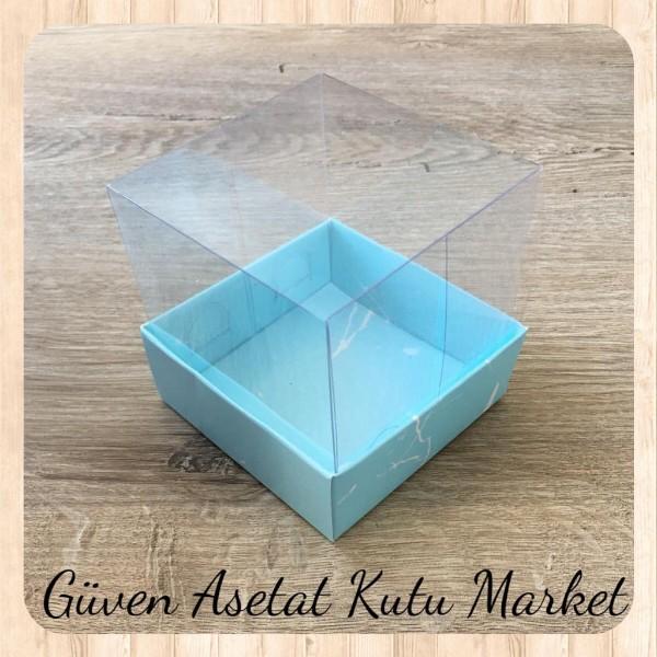 9x9x7 Altı Mavi Mermer Desenli Karton Üstü Asetat Kutu