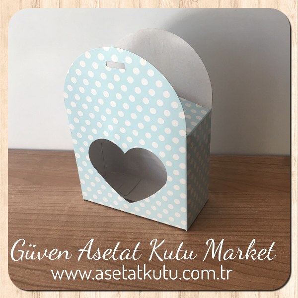 10.5x9x5 ölçülü kalp pencereli mavi puantiyeli karton kutumuzu buradan inceleyebilirsiniz.